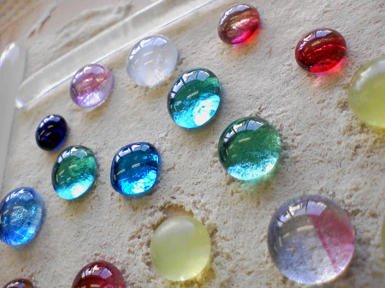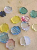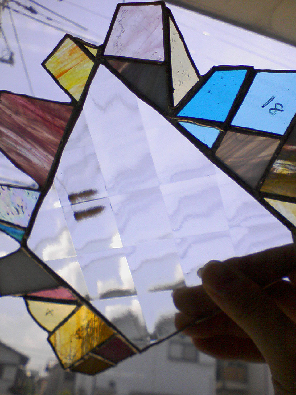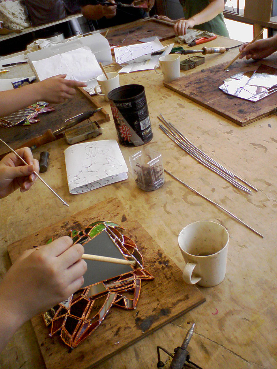 エクステンション講座のステンドグラスの課題が授業内に終わらなかったので、その終わってない生徒数名とで先生の工房(スタジオ?)にお呼ばれされました。 阪急の茨木市駅まで来たら先生が迎えに来てくれると言う事で…若干、駅内で迷いつつも先生と合流。 途中、友達が腹痛に見舞われてましたが、薬飲んで回復してました…良かった; そして先生の車でに乗り込み工房(スタジオ?)までレッツゴー! 工房(スタジオ?)に到着したら、さっそくステンドグラスの作業にとりかかる… 友達(写真:一番手前)のステンドグラスはピースの数が神でした。 私が作ろうとしてるのはこんな感じのステンドグラス。 特に形にこだわりはありません。 上の展開図(?)と見比べると、丸い飾りがまだついてません…作業はここからです。 と、そこに先生が出してくれた丸いガラス。 先生がジュエルって言ってたのでジュエルって呼びます。 いくつかの瓶に色とりどりのジュエルが沢山入ってました。 「この中で行けそうやったらこっから選んで…無かったら作ろうか。」と、先生。 私は直径1㎝に満たないくらいの大きさがよかったのですが、ここにあったのは大体1.5㎝~くらいのジュエル。 気に入った色も無かったので、新しくジュエルを作る事になりました! まずはいくつかのガラスを選んで…丸く作る(焼く)ので、比較的丸っぽく多角形にガラスを切ります。 これを800度で焼くと丸くなるらしいです。ガラスを焼くだなんて、なんだからしくなってきたなぁ!笑 (本来、授業ではもともとあるガラスを切って作るんですよ。) と、そこでお昼ご飯の時間。先生が牛丼屋に連れて行ってくれました! 私が食べたのは大辛キムチ丼(みたいな名前だった;)を頂きました!美味しかった!辛さも満足☆ 昼も食べたし作業再開~! カキ氷食べるとか言ってたけど練乳が無くて結局食べなかった…ちょっと心残り…(´・ω・`) そうしてうだうだしてるうちにガラスが焼きあがりましたー!熱々でした。(嘘!ちゃんと冷ましました!笑) ぷるぷるのつやつやですよ! さ~て、作品につけるぞー! と、冷蔵庫にこんなものが…「たこ焼き味ラムネ」!? 「作業が一番遅かった奴にたこ焼き味飲ますぞ~!」って先生に脅されました。笑 そして無事出来上がりましたー! 友達のステンドグラスも写メ撮らせて貰えばよかったー!(´・ω・`) ピースの数が神なステンドグラス、「エスカルゴ」(命名)や、作業を先生に手伝ってもらってもうほぼ先生の作品(だって本当に先生やってて、友達は工房の掃除させられてた!笑)な友達のランプ形ステンドグラス等…皆頑張りました! 短い間だったけど先生も面白かったし、学科が違う生徒さんともお喋り出来たし、とても楽しかったです。 なんだかまだ学生やってたいなぁ~…と思った一日でした。 たこ焼き味のラムネは無事誰も飲むことなく冷蔵庫に戻されました。笑 2008.07.09 Wed 13:14:20 フリーだ むん(・н・)2008.07.07 Mon 04:57:52 集中切れた2008.07.05 Sat 16:38:39 キラキラ2008.06.22 Sun 17:45:28 んもぅ☆ |